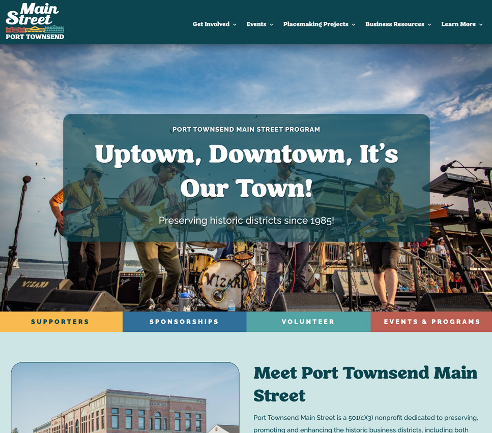 Port Townsend Main Street is a 501(c)(3) nonprofit dedicated to preserving, promoting and enhancing the historic business districts, including both Uptown and Downtown. Guided by the nationally recognized Main Street Four-Point Approach, Design, Economic Vitality, Promotion, and Outreach, we work to care for historic places, support local businesses, create vibrant events and public spaces, and foster impactful partnerships keeping the districts strong and thriving year-round.