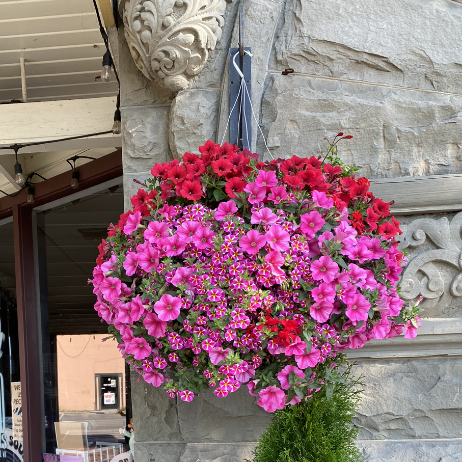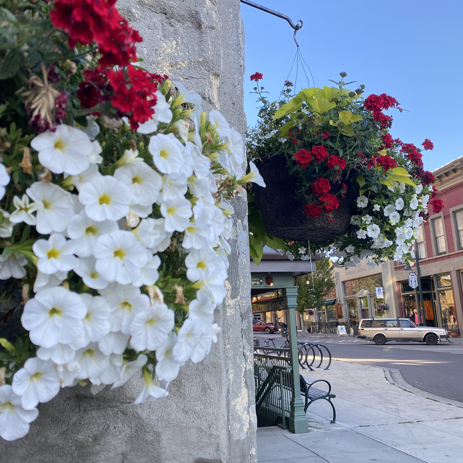 Port Townsend Main Street coordinates and purchases the hanging flower baskets from the Port Townsend Garden Center, ensuring high-quality, locally grown arrangements that complement our Downtown & Uptown aesthetic. Our Flower Basket Maintenance Program takes care of the details all season long, including professional installation, watering four days per week from May through September, regular deadheading and fertilizing, and ongoing care to keep each basket looking lush and vibrant.