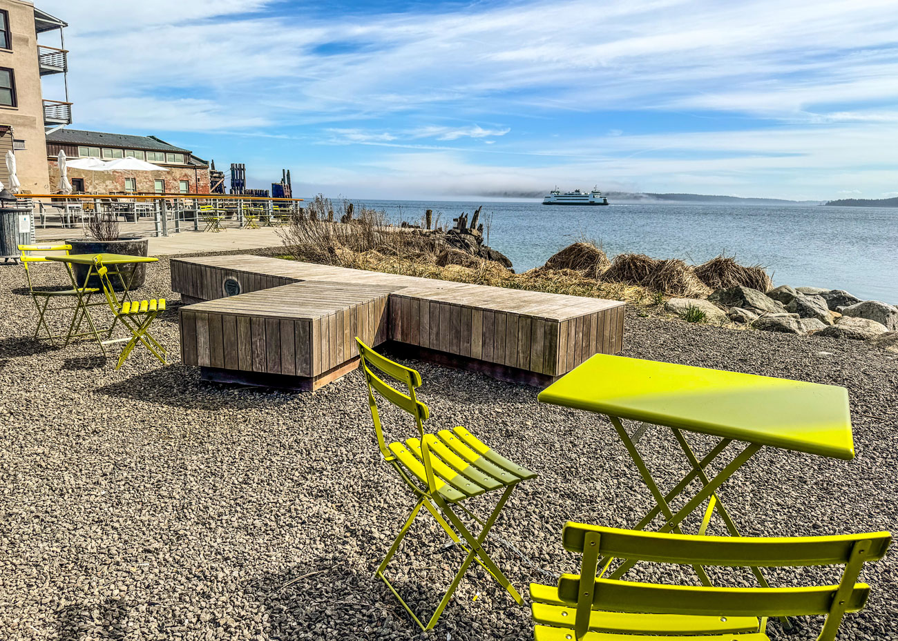 The Port Townsend Main Street Program worked with the City of Port Townsend to enhance the street end of Adams Street, next to Adams Street Park. We made the space an inviting place for locals and visitors to sit, relax and enjoy the beautiful water views by adding benches, tables and chairs and greenery. The design of this beautiful parklet and benches was done by Studio STL. Thanks to the City of Port Townsend for doing the ground work, shoreline improvements and installation of the planter pots.